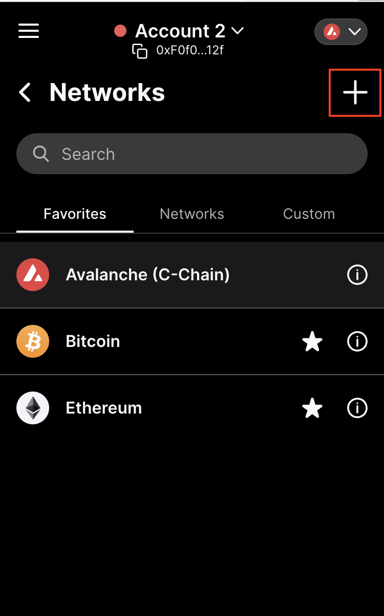 Now, open the Core browser extension and navigate to the screen to add a new network.