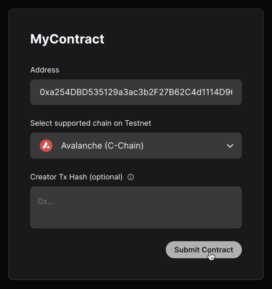 • Click on the Submit Contract button to start the verification process.